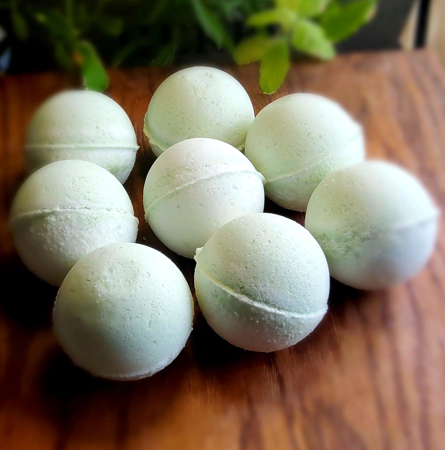 Our Eucalyptus & Mint bomb is perfect for those who are looking for a soothing, yet refreshing experience. made with essential oils, Epsom salts, and grapeseed oil, this bomb will leave your skin feeling soft and hydrated. The unique blend of colors is achieved through the use of naturally occurring mica, giving each bomb a one-of-a-kind look. Most importantly, the refreshing scent of eucalyptus and mint can help act as a decongestant and promote relaxation. So sit back, relax, and let our bomb do its job!
